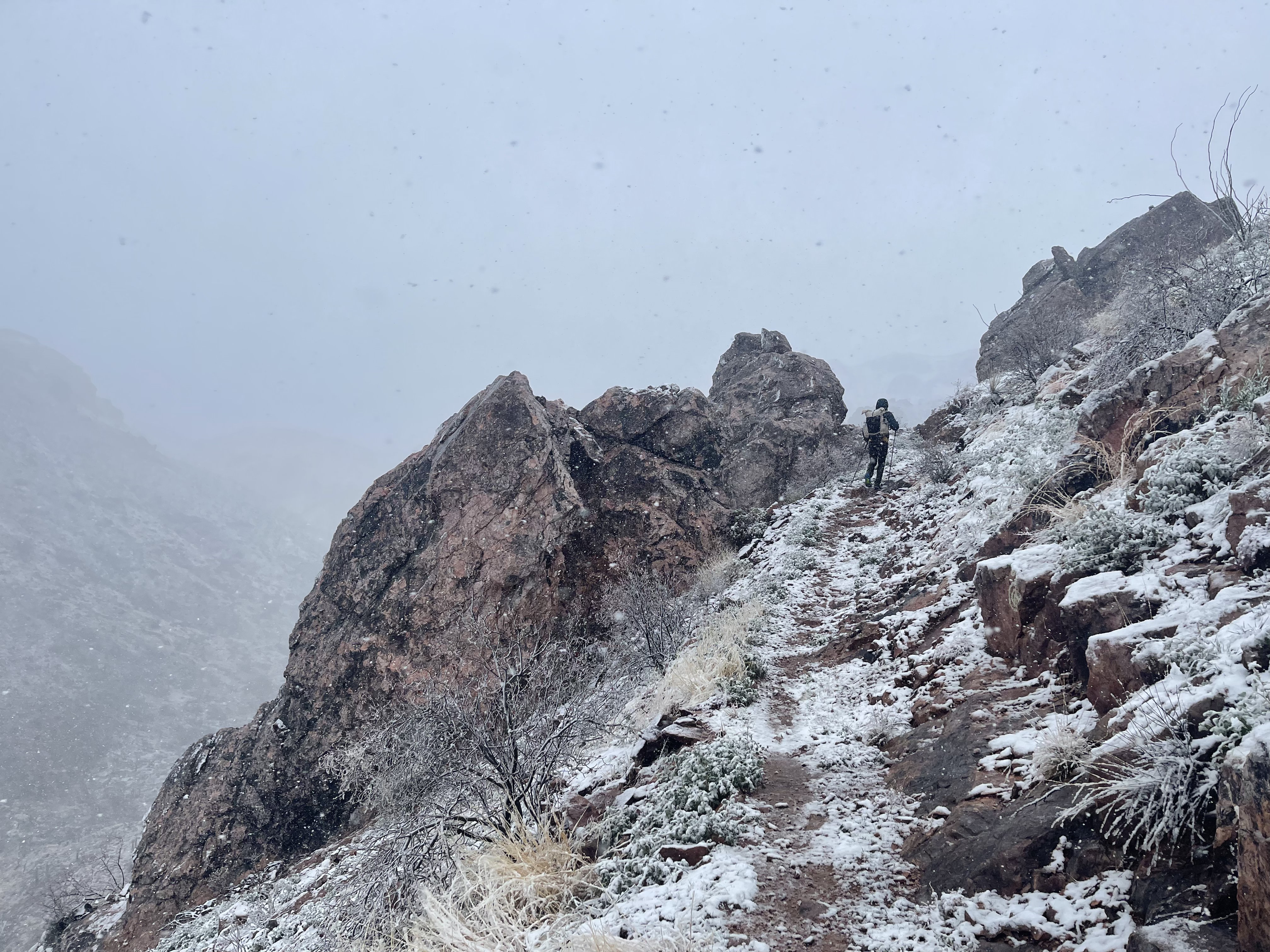 Hiking through the storm to the rain collector. PC Luke.