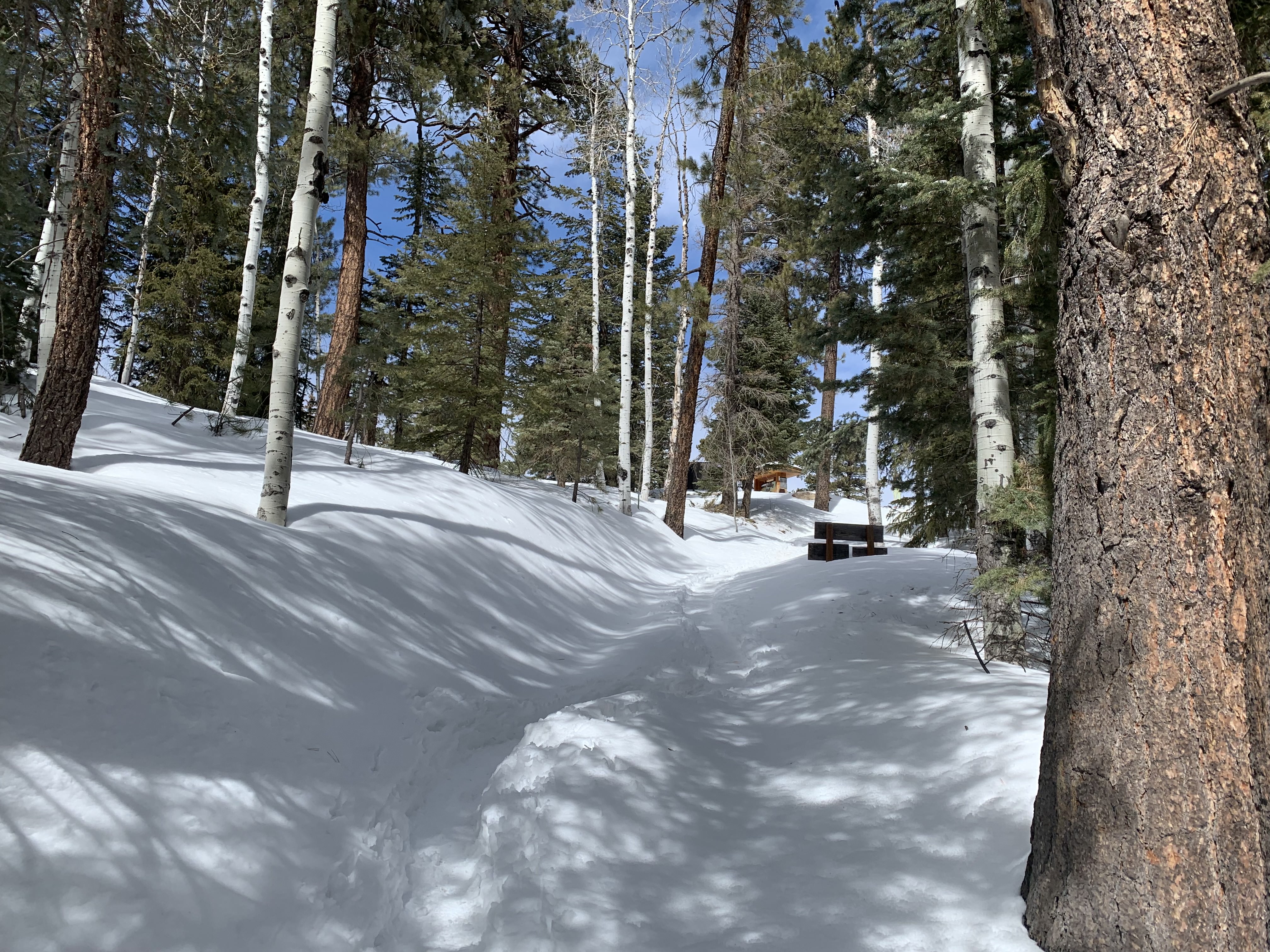 Final snow-covered steps to the North Rim of the Grand Canyon.